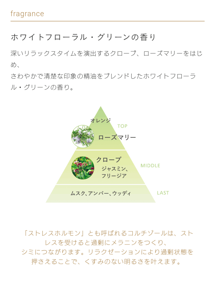 穏やかな気分へ誘い、シミの発生をくい止めます。
